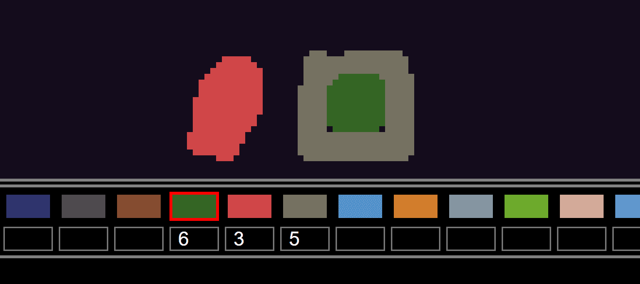 Hra může mít 16 scén, každá scéna může přecházet do libovolné jiné. Scény se kreslí přímo v prostředí Flickgame. V dolním panelu vybíráme barvy, kterými kreslíme. Pod barvou můžeme určit které scéně daná barva odpovídá. To znamená, že pokud poté hru spustíme, při kliknutí na danou barvu nás hra přehodí na odpovídající scénu.